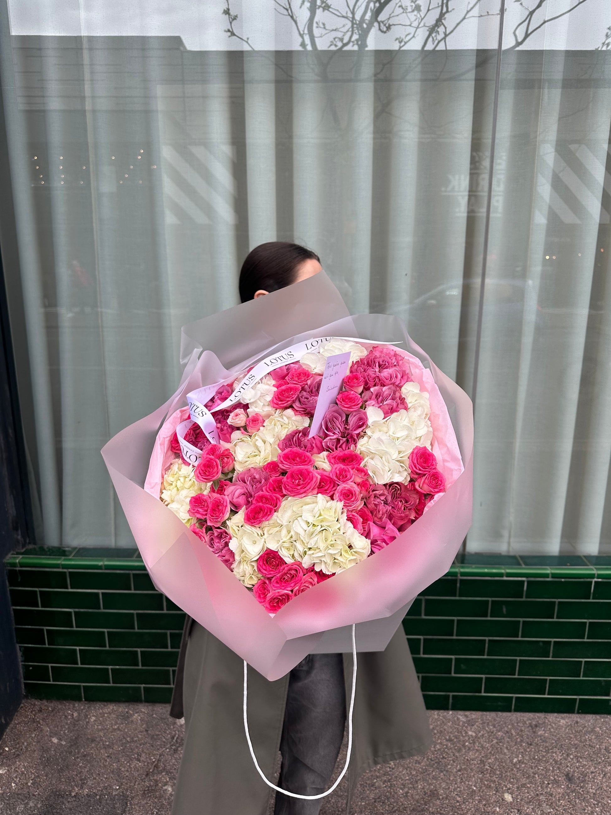 Warning: this bouquet may cause shortness of breath, heart palpitations, and an overwhelming urge to post it on Instagram. Packed to perfection with vibrant pink spray roses, creamy hydrangeas, and enough wow-factor to stop traffic.